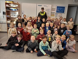 2.bekkur fékk gefins endurskinsmerki og fengu að sjá hvernig endurskinsmerkin lýsast upp þegar ljósið skín á þau. Miklar umræður sköpuðust um mikilvægi þess að vera með endurskinsmerki.